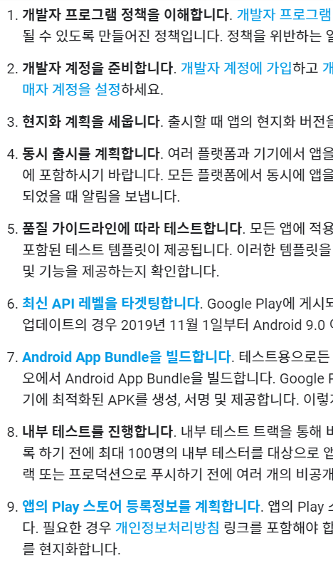 이 체크리스트를 통해 앱이나 게임을 출시하는 데 필요한 모든 단계를 완료했는지 확인하세요.