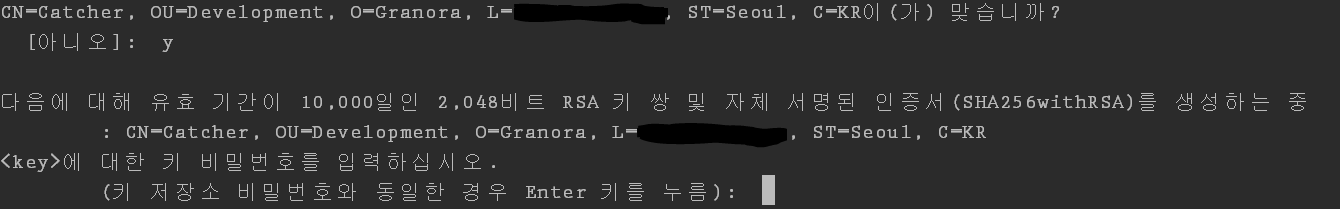 - 키 비밀번호 설정해주고 keystore 참조 구성 담아준다.